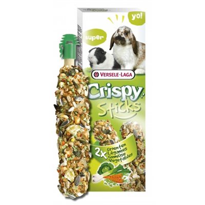 Dois sticks de roedores tostados no forno para coelhos e cobaias com cenoura, ervilhas, alho francês e couve, entre outros ingredientes.