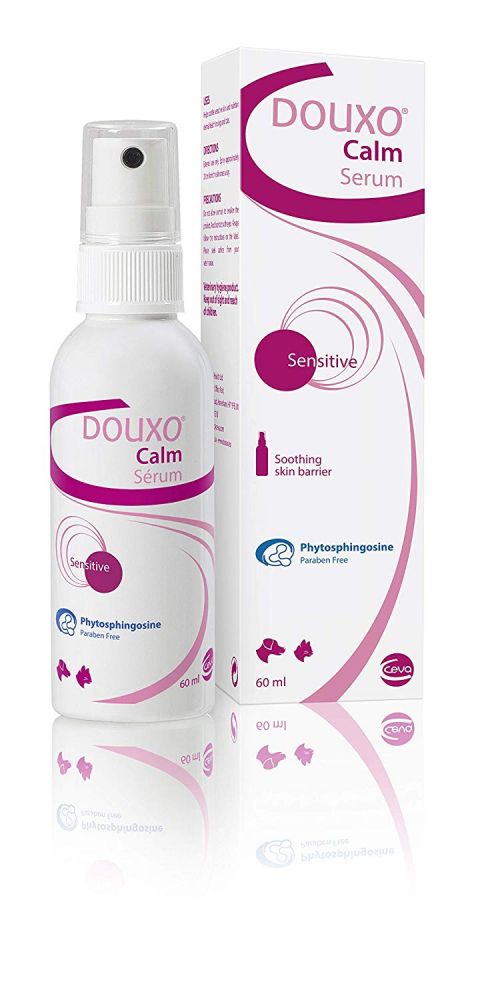 Douxo Calm acalma e refresca a pele dos cães sensíveis ou alérgicos, diminuindo a inflamação, a irritação e recuperando a barreira de protecção.