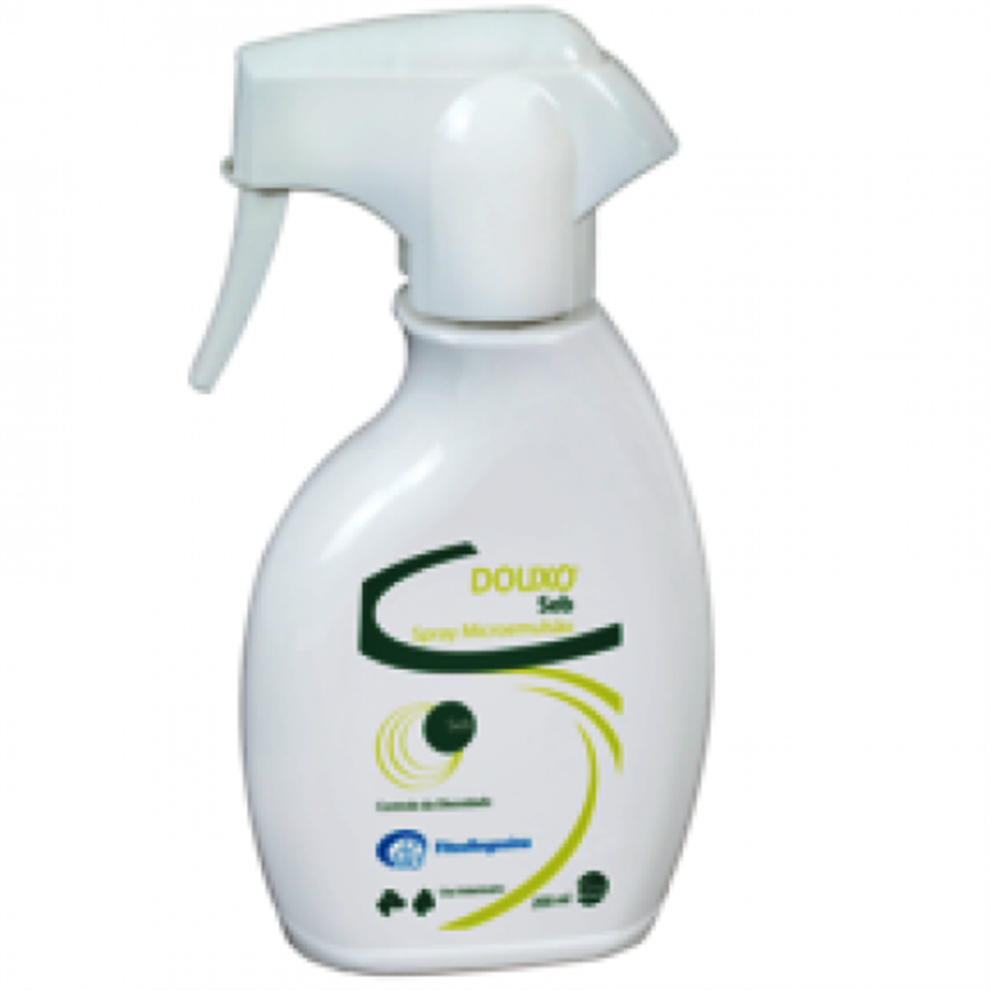 Spray para pulverização cutânea, indicado como auxiliar no tratamento de cães e gatos com dermatites e no controlo do odor em animais.