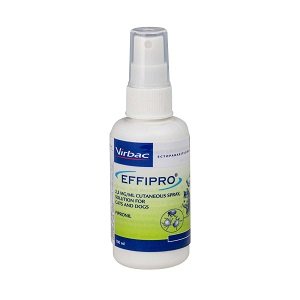 Effipro Spray 100ml. Indicado contra infestações por pulgas, carraças e piolhos em cães e gatos.