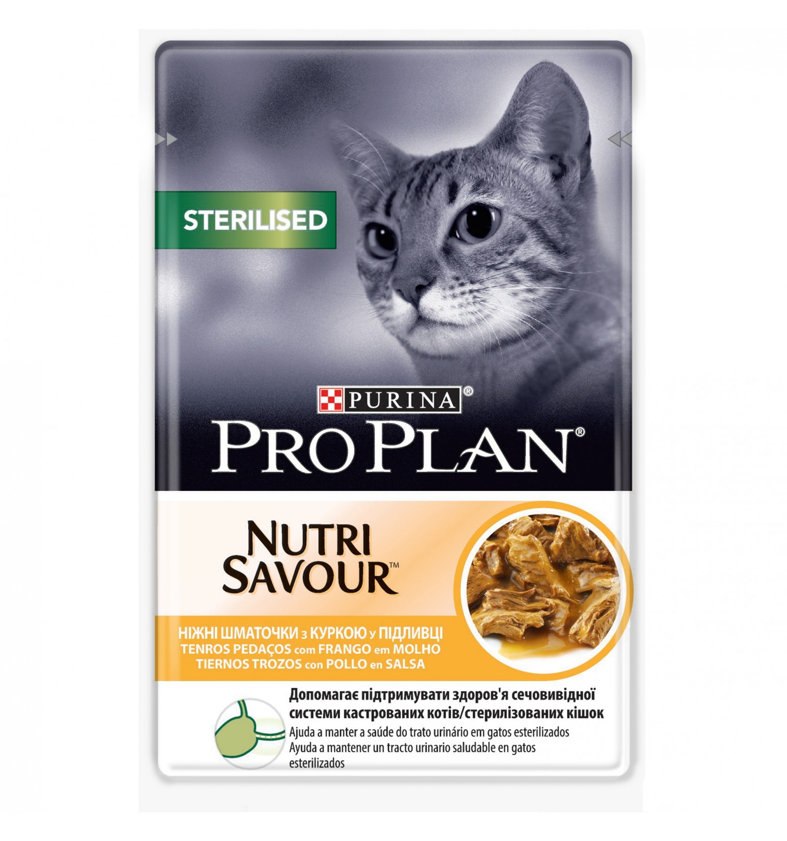 Pro Plan Sterilised Frango 85 GR PURINA PRO PLAN As peças tenras esterilizadas com frango ao molho são um alimento completo para gatos esterilizados.