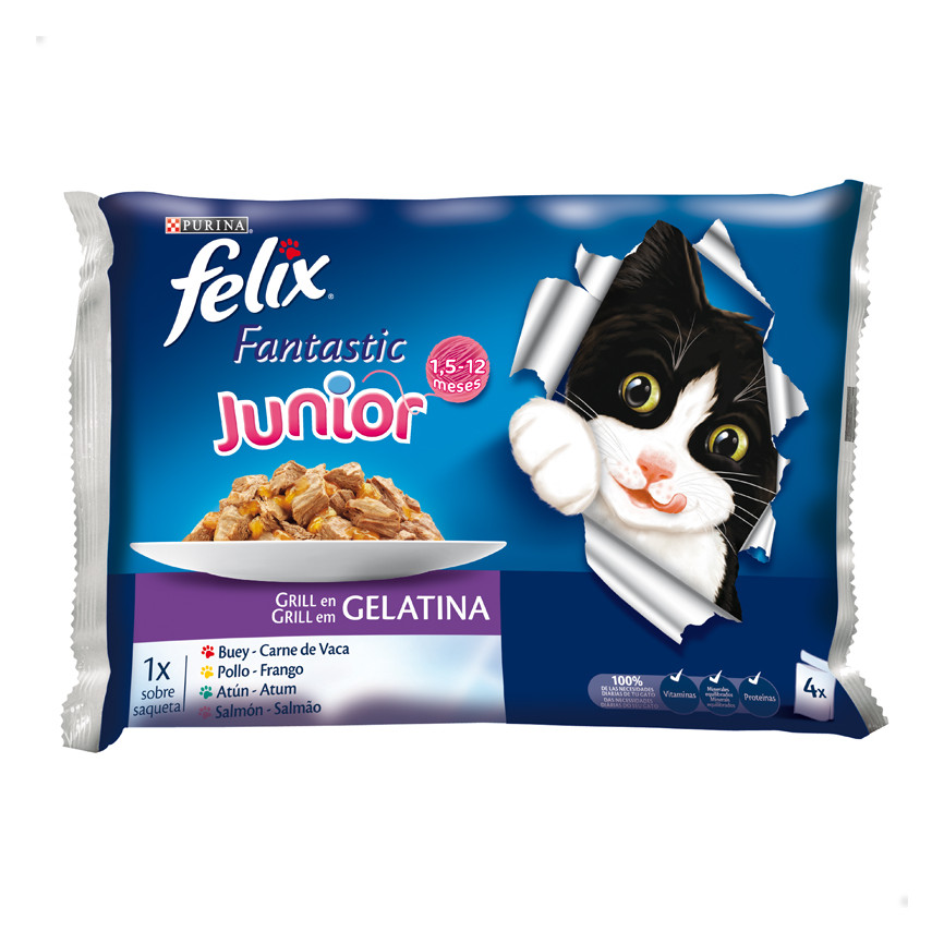 FELIX Fantastic Junior é uma gama de deliciosas refeições especialmente preparadas para ajudar o seu gatinho a crescer no seu primeiro ano até à idade adulta.